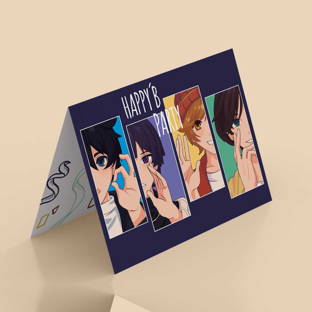 کارت پستال انیمه دعوت تولد قابل چاپ بر روی انواع کاغذ و مقوا. با توجه به برداری بودن طرح برای چاپ می توان از سایزهای مختلفی استفاده نمود مانند A4